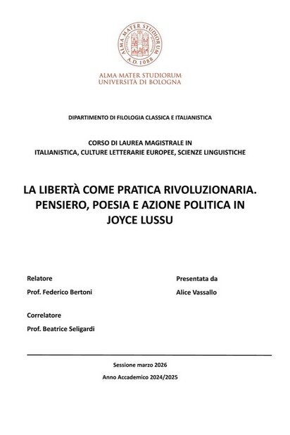 "LA LIBERTA' COME PRATICA RIVOLUZIONARIA. PENSIERO, POESIA E AZIONE POLITICA IN JOICE LUSSU" - ALICE VASSALLO