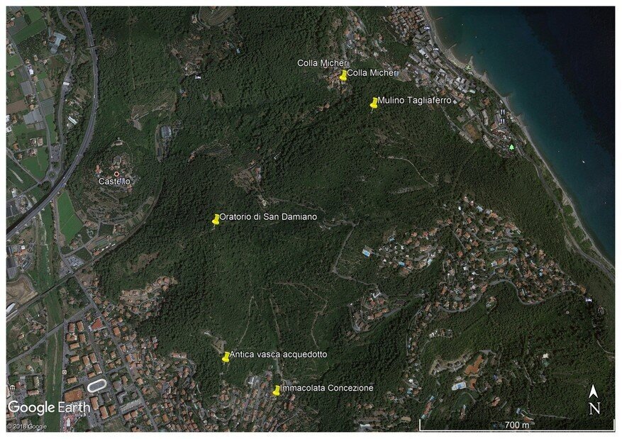 Dalla borgata di Colla Micheri alla Cappella dell'Immacolata Concezione di Mezzacqua, passando dall'Oratorio dei Santi Cosma e Damiano e percorrendo un tratto dell'antica strada di origine romana via Ligure Costiera.