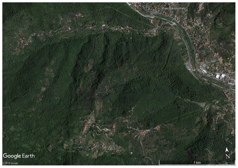 Dalla frazione di Conna, attraverso uliveti e boschi si raggiungono le borgate di Moltedo e Barò, per scendere in frazione San Bartolomeo alla borgata Lanfredi.