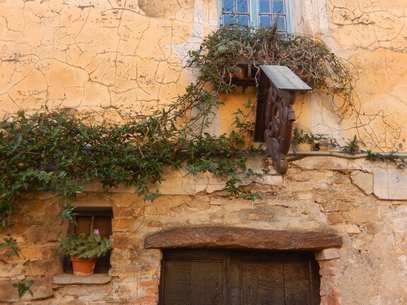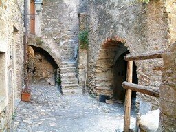 Il laterizio è largamente impiegato negli edifici di questa frazione in corrispondenza appunto di aperture, come quella inserita nella parete della casa n. 19, m. 4 x m. 7 prospiciente la piazza (… Fig. 90). Si tratta di una minuscola finestrella sormontata da una piattabanda di mattoncini in cotto, lunghi e sottili. Di dimensioni maggiori sono invece quelli impiegati in una volta inserita nella porzione meridionale dell’abitato (Fig. 91).