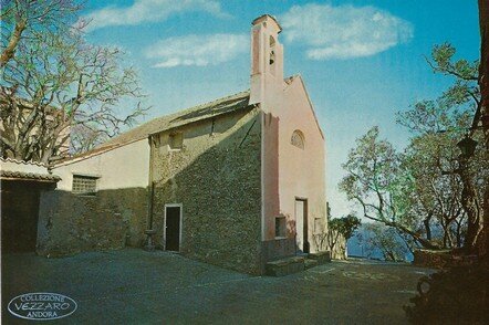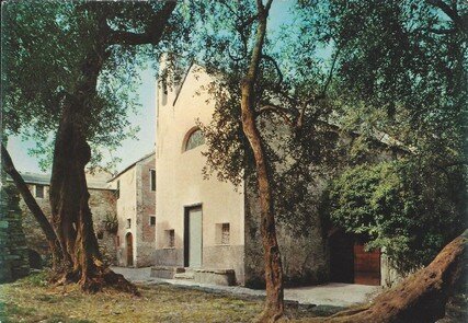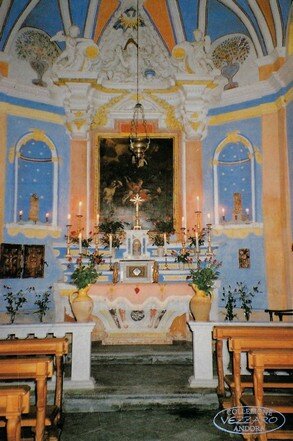 E’ situata sul crinale del Capo Mele (…), che separa il comune di Andora da quello di Laigueglia, in una posizione molto particolare, cioè nel punto in cui la via - di tradizione romana - che sopraggiunge da Laigueglia, si biforca in due direzioni, dando luogo a due tronconi stradali, quello più settentrionale che scende verso Castello, e quello più meridionale diretto invece verso gli oratori dei S.S. Cosma e Damiano (Fig. 84) e dei S.S. Nazzaro e Celso, del quale rimane semplicemente una targa commemorativa (Fig. 85).