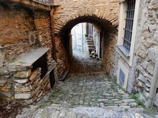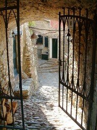 Lo spiazzo antistante l’oratorio presenta due passaggi: la suddetta volta, ed un’altra posta fra le case nn. 29 e 30 (…), in cui è ancora visibile il cardine su cui era infisso il portone che veniva sbarrato in caso di emergenza (Fig. 88).