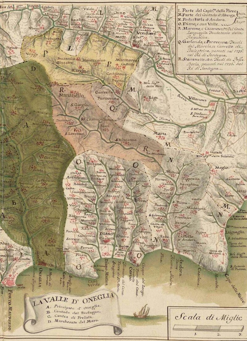 La carta venne realizzata nell'ottobre del 1785, divenendo oggetto di denuncia da parte dei Consoli di Laigueglia, i quali accusarono l’autore di avere effettuato studi e rilievi in modo furtivo, senza averne informato, al fine di creare arbitrariamente la rappresentazione grafica della valle.