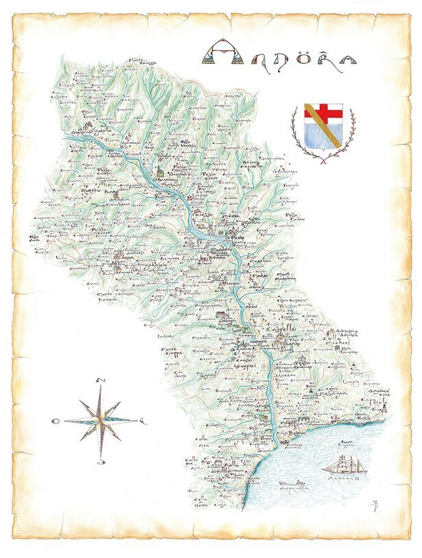 I quartieri della Magnifica Comunità di Andora erano costituiti territorialmente nel modo seguente: