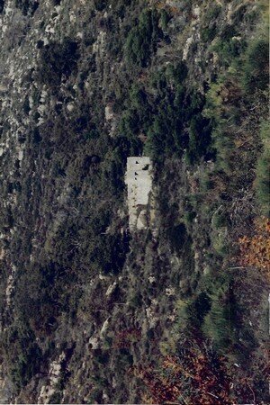 Le Case Tagliaferro invece hanno avuto un lieve incremento della superficie abitativa, essenzialmente verso nord-est, se si eccettua un singolo edificio, contrassegnato nella mappa moderna col N. 82, e situato al centro della borgata. Quest’ultima ha subito molti interventi di restauro, per cui le strutture apprezzabili - dal punto di vista archeologico - sono ridotte a due esempi, che corrispondono ai Nn. 300-301 sulla mappa (…). La prima casa, m. 3 x m. 4, (Fig. 28) è caratterizzata da una facciata non dissimile da quella della casa Nn. 29-30 della frazione Canossi [58].