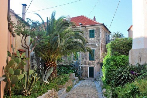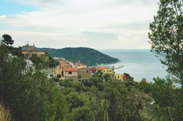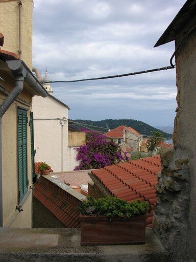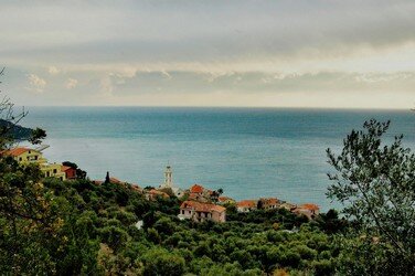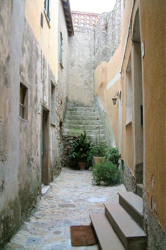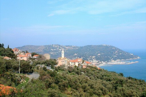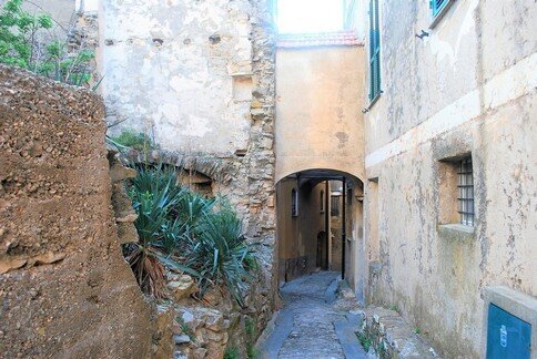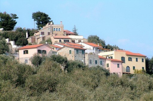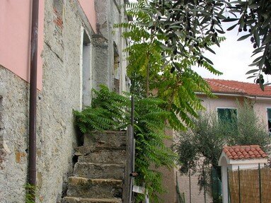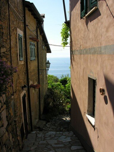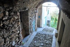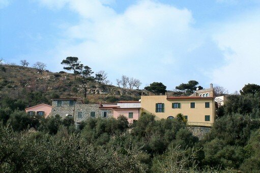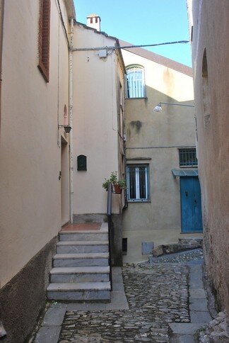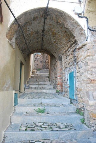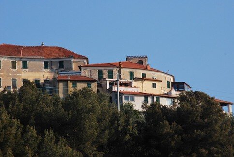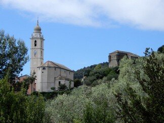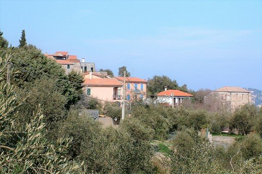 Va da sé che il nucleo principale è quello raccolto attorno alla parrocchiale: il borgo detto Case Sottane (…). Esso è costituito da un agglomerato di case disposte ai lati della strada che dalla chiesa discende verso il mare, superando un dislivello di circa m. 100. Naturalmente l’abitato interessa solo il tratto iniziale della mulattiera, che lasciatasi alle spalle le ultime abitazioni, si snoda fra le fasce un tempo coltivate interamente ad ulivi. Presenta quindi un tipico insediamento lineare (...) di dorsale, articolato su un solo asse allungato, proiettato (...) verso il mare, secondo l’andamento frequente dei terrazzi costieri, cioè una semplificazione del tipo a fuso di acropoli, lineare [50].