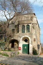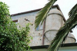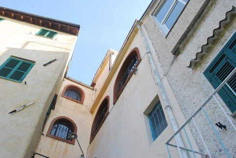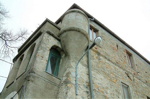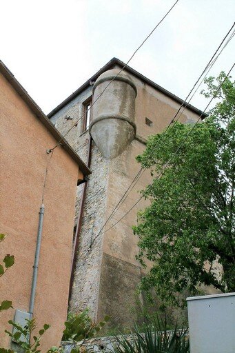 Come questa è un’abitazione a tre piani, qui però con una sola entrata al piano terra; identico è lo schema delle aperture ai piani superiori. E anche in questo secondo caso, ritroviamo i contrafforti, liberi dall’intonaco che invece ricopre le pareti al secondo e terzo piano. Alla base i blocchi di pietra sono piuttosto grossi, abbastanza regolari; man mano che si sale verso l’alto i corsi si assottigliano e si fanno frequenti i conci derivati dallo sfaldamento di roccia.