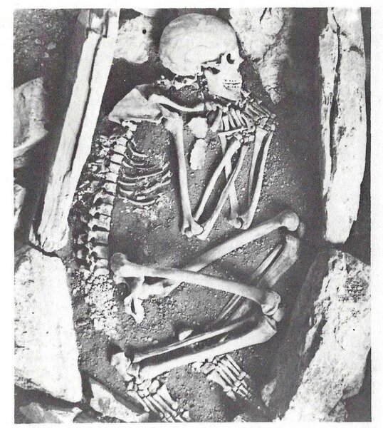 Scheletro umano scoperto nella Caverna delle Arene Candide di Finale L. (Museo Archeologico di Ge-Pegli).