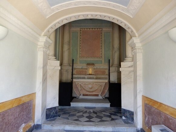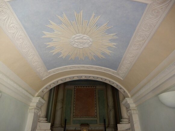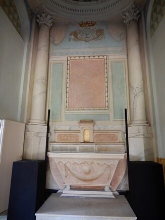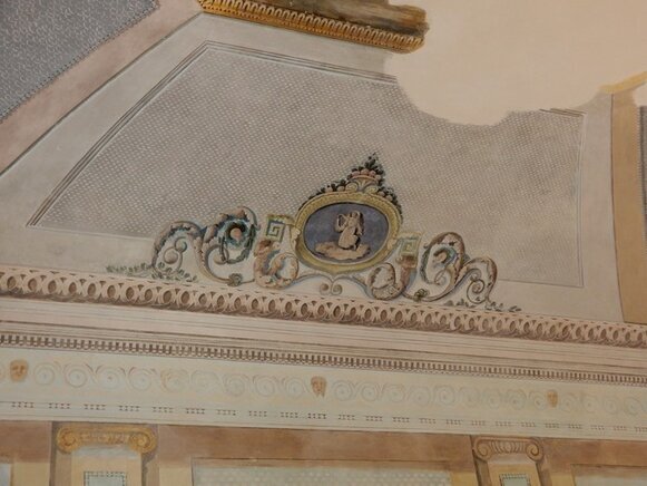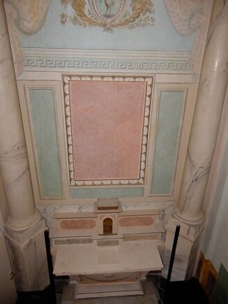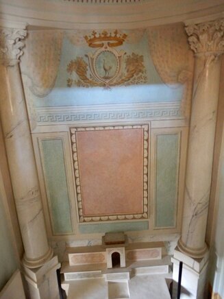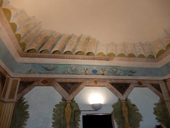 La visita può cominciare, dal piano terra, ammirando la Cappella privata della famiglia Tagliaferro con affreschi originali.