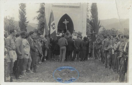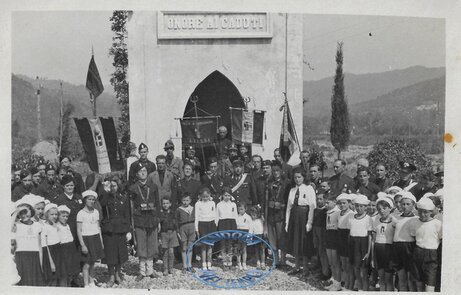 Inaugurazione del gagliardetto degli alpini a Molino Nuovo, davanti alla sede del P.N.F. - 1934