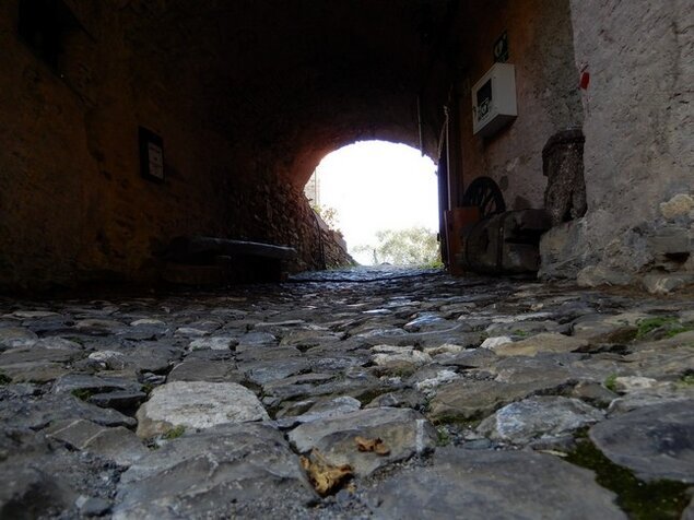 Proseguendo sul tracciato si costeggia un antico muro di cinta napoleonico e si passa in una strettoia tra antiche case, originaria stazione di cambio dei cavalli.