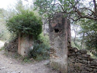 Verso la fine del percorso, alla nostra sinistra, appaiono i suggestivi resti del “Gumbassu” e l’acquedotto (“beŗa”) che proveniva da San Bartolomeo (“Murteu”), arrivava a Villa Tagliaferro e sboccava nel mare.