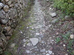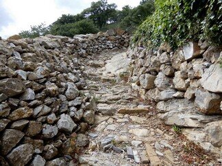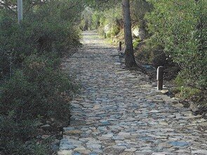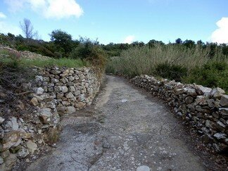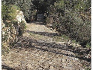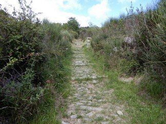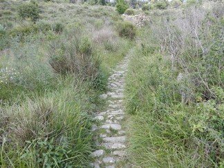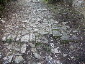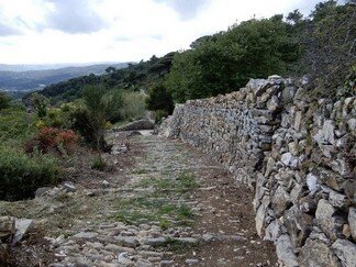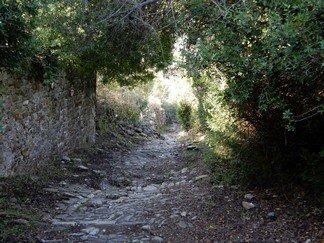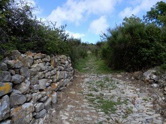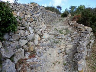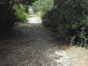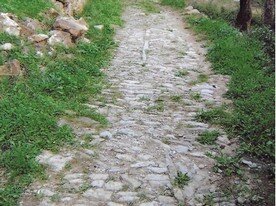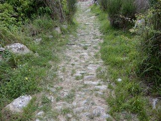 Strada selciata, caratterizzata da una larghezza di circa 2-3 metri, con un sedime caratterizzato da larghi quadroni sparsi infissi nel terreno, con un percorso accompagnato da tratti di muri in pietra secco, realizzati con grandi massi sovrapposti.
