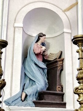 Dietro l’altare vi sono due nicchie che contengono statue: a sinistra la Vergine e a destra l’Arcangelo Gabriele annunciante. Attualmente le statue sono invece dipinte in colori pastello (rosa-azzurro).