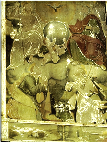 Anche le scene dipinte sulle facce del pulpito non sono più leggibili.