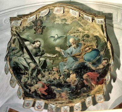 Trinità con angeli e Santi, bottega G. De Rossi come appare oggi, dopo ulteriore restauro.