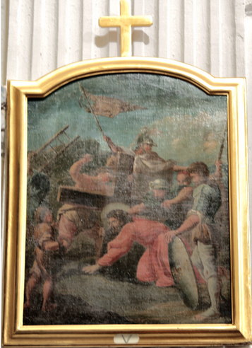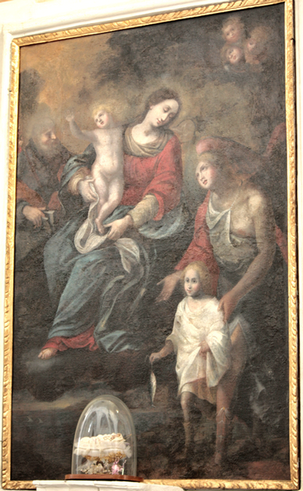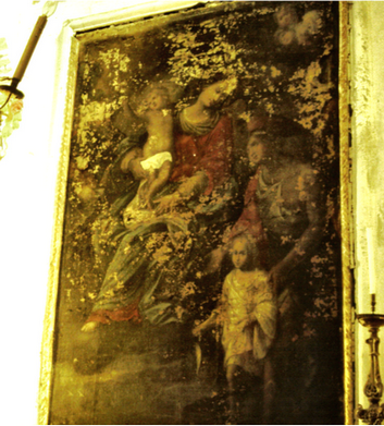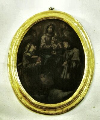 Un altro dipinto ovale analogo (sec XVIII) con Madonna e due Santi domenicani (restaurato nel 1989) fu rubato nell’inverno 1997.