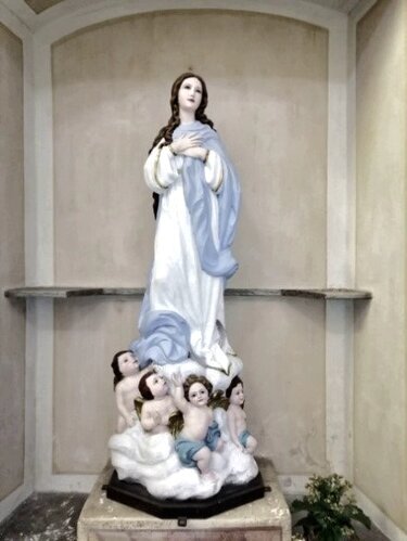 A sinistra dell’altare è posta una statua dell’Immacolata concezione, anch’essa in una piccola nicchia incorniciata.