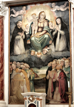 Particolare dei committenti raffigurati nel dipinto della Madonna del Rosario.