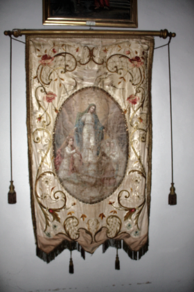 Sopra la porticina laterale è appeso uno stendardo processionale.