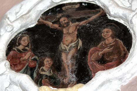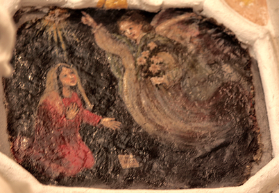 Nella prima immagine, l'Annunciazione (parete destra, basso - indicata nelle schede come in sacrestia/deposito).