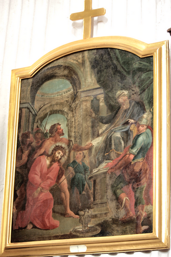 Gesù Cristo condannato a morte I (presbiterio, lato sinistro, lesena seconda) e Gesù Cristo caricato della croce II (presbiterio, lato sinistro, lesena prima)