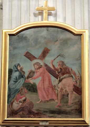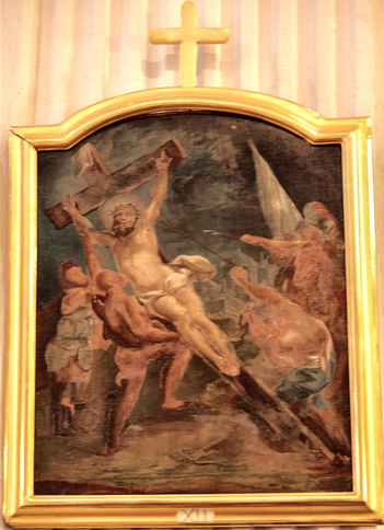 Gesù Cristo cade la seconda volta VII (controfacciata, lato destro) e Gesù Cristo consola le donne di Gerusalemme VIII (controfacciata, lato sinistro)