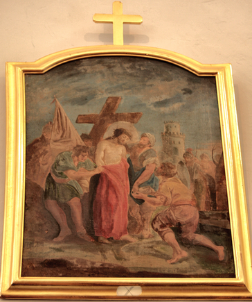 Gesù Cristo cade la terza volta IX (lato destro, lesena prima) e Gesù Cristo spogliato e abbeverato di fiele X (lato destro, lesena seconda)
