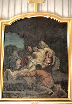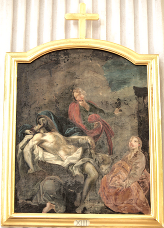Gesù Cristo deposto dalla croce XIII (presbiterio, lato destro, lesena prima) e Gesù Cristo deposto nel sepolcro XIV (presbiterio, lato destro, lesena seconda)