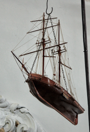 Nella navata sono inoltre appesi due velieri ex voto del XIX secolo, mentre il “Veliero con bandierine” purtroppo non è più presente.