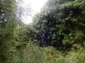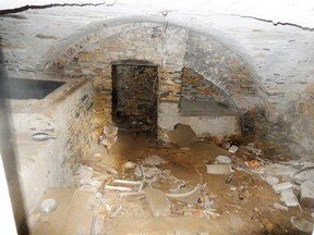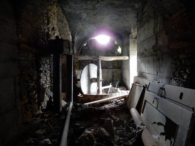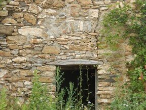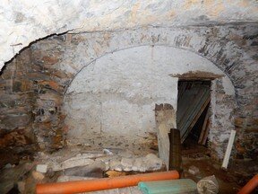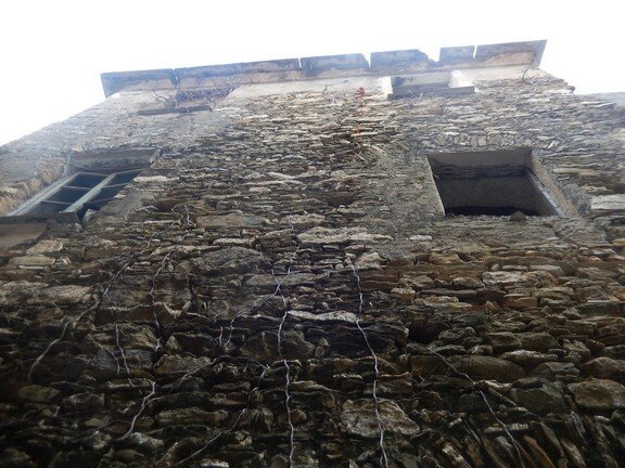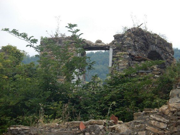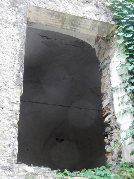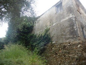 ancora possibile intravvedere una piccola apertura ad arco, che dà luce all’abside (Fig. 61) e un contrafforte di sostegno.