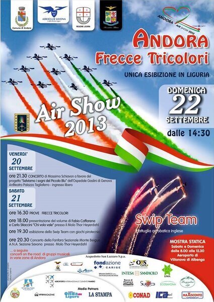 Il 22 Settembre 2013, Andora viene invasa da decine di migliaia di persone accorse ad assistere allo spettacolo aereo con aeromobili d'epoca e numeri acrobatici che culminano con l'esibizione della Pattuglia Acrobatica Militare delle "Frecce Tricolori".